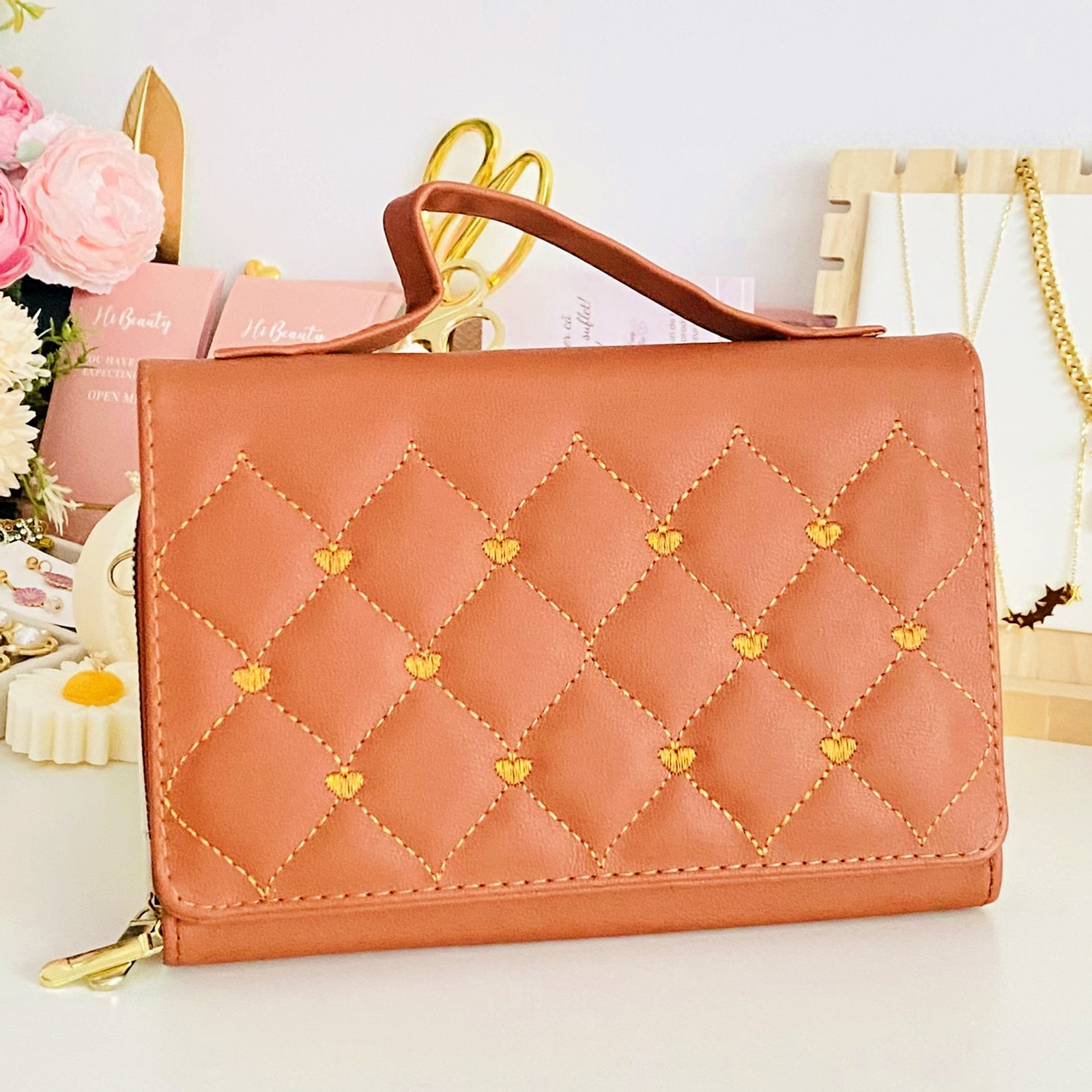 Geanta portofel 2 in 1, cu 2 compartimente mari si lant detasabil pentru a putea fi purtata stil postas, din piele ecologica, cu feroneria aurie, foarte practica, ce-ti va completa cu succes fiecare tinuta.