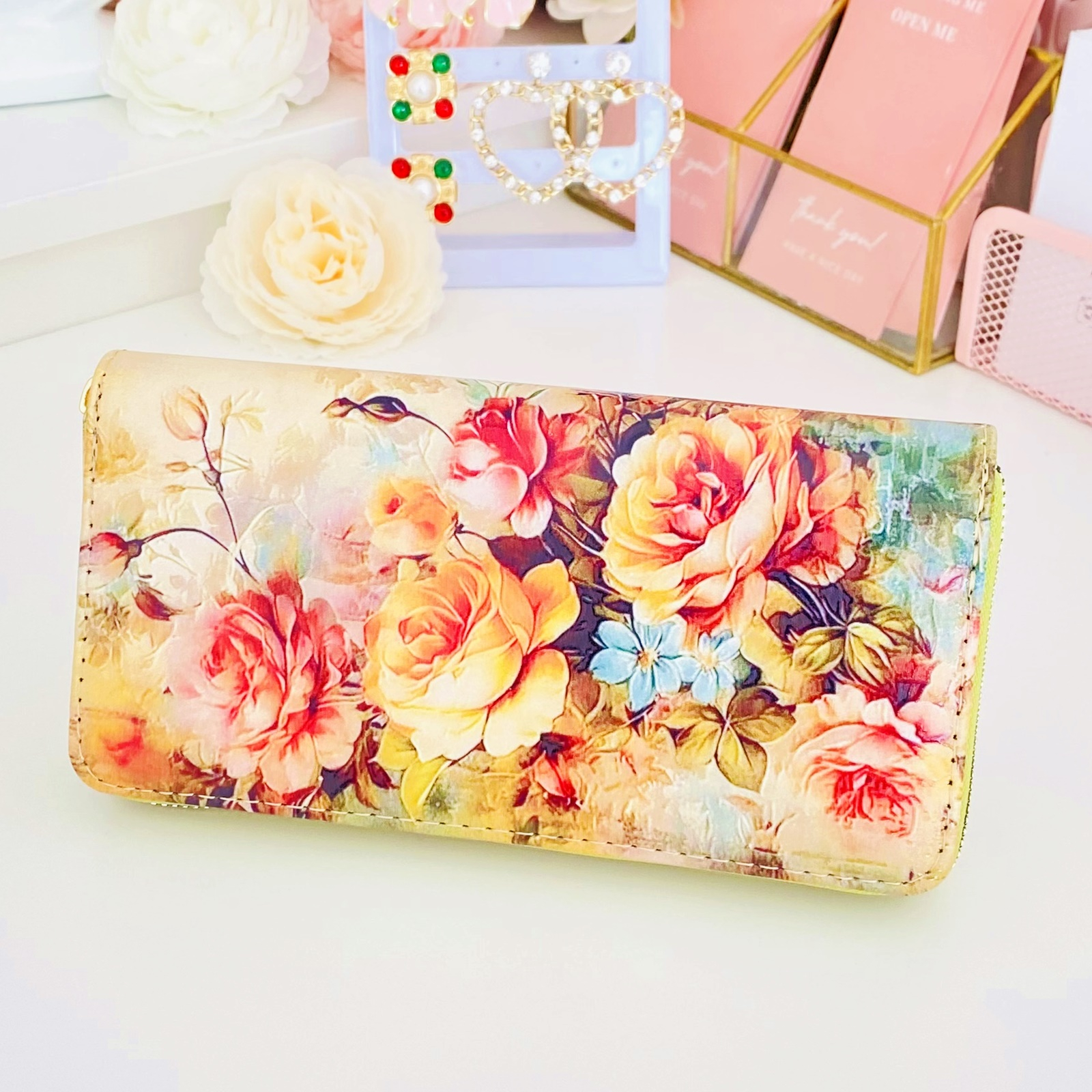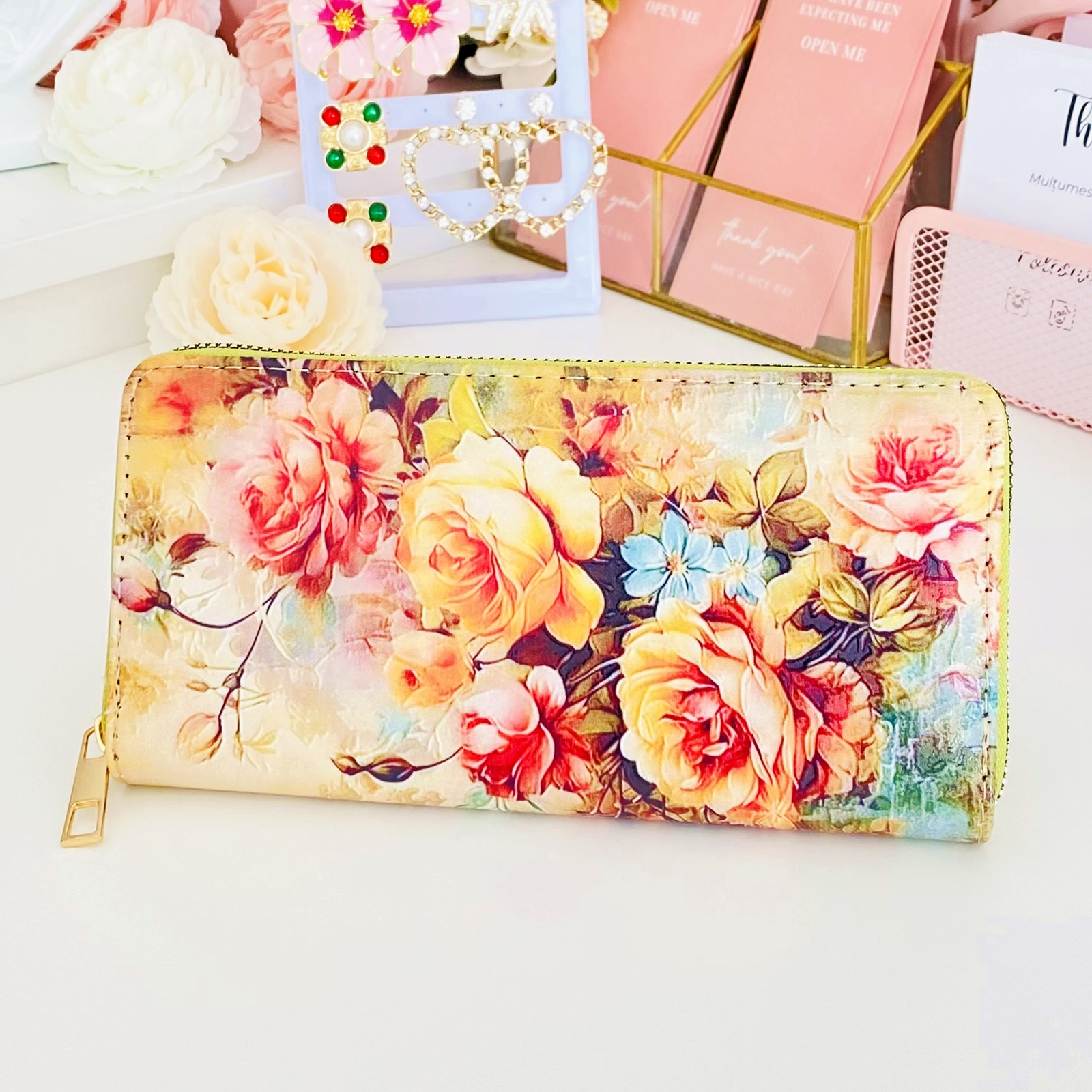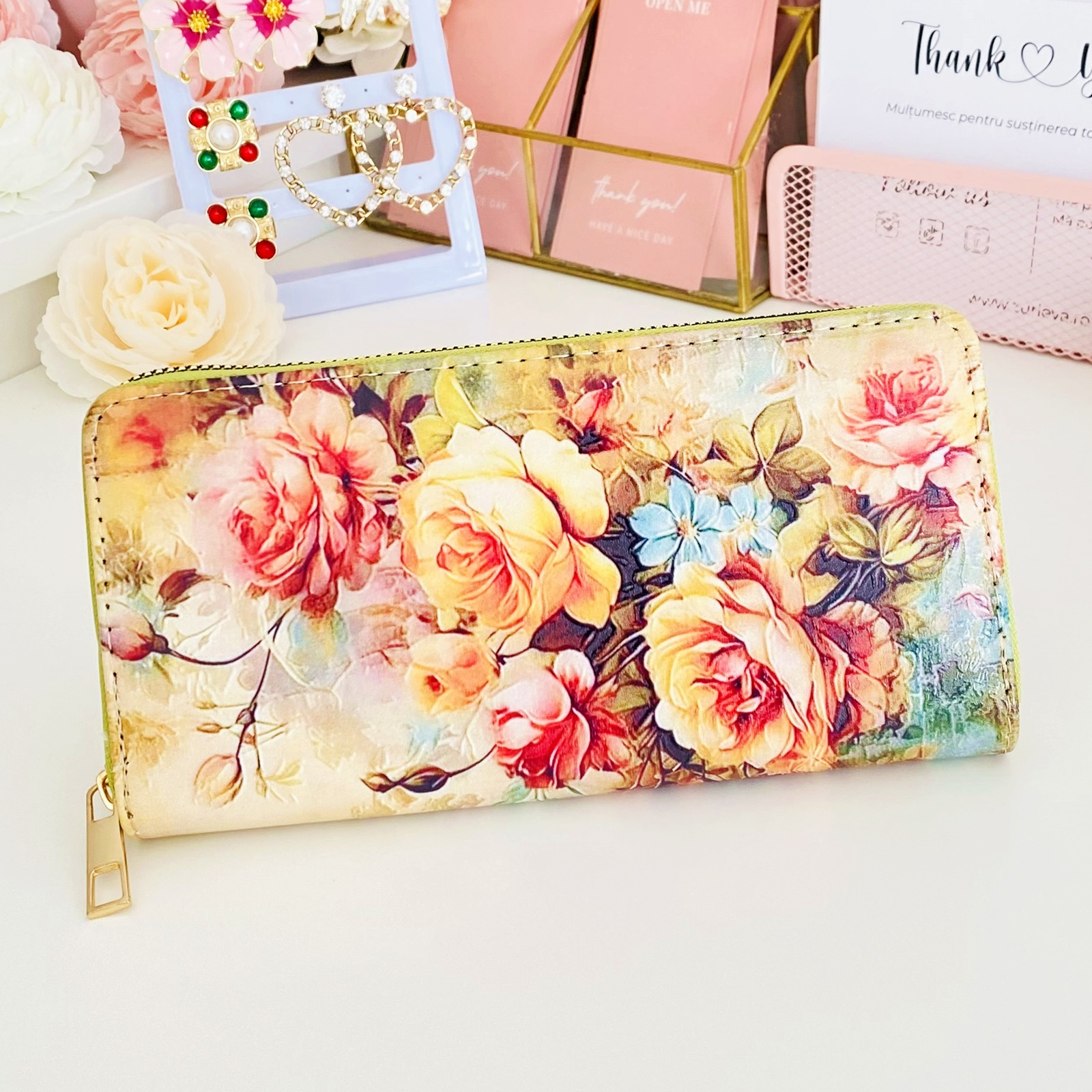 Portofel din piele ecologica cu feronerie aurie, cu multiple spatii de depozitare pentru bani, carduri si monede, fiind foarte practic si cu un design modern.