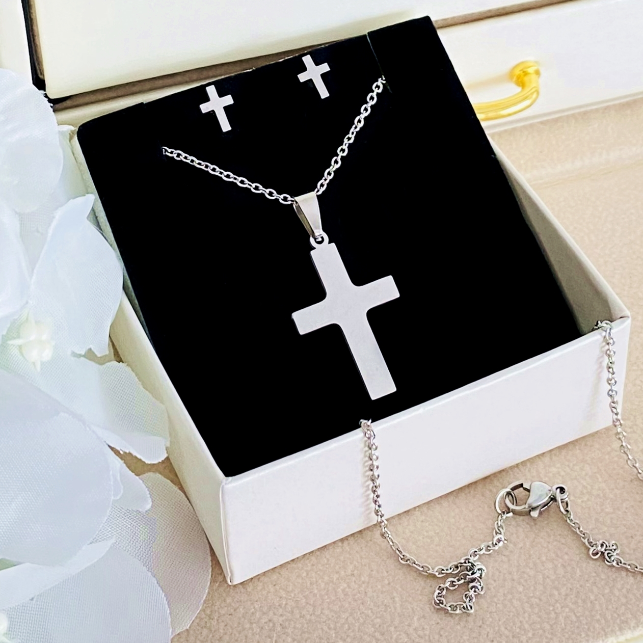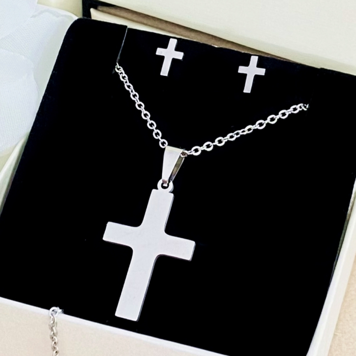 Set Colier & Cercei Cruciulite Argintii - Otel Inoxidabil