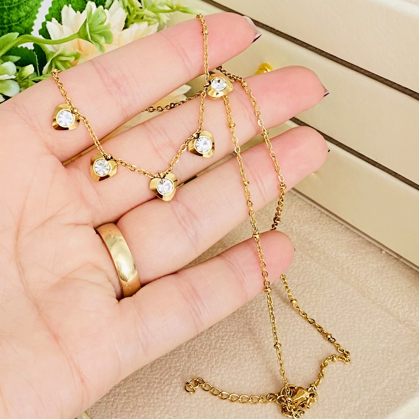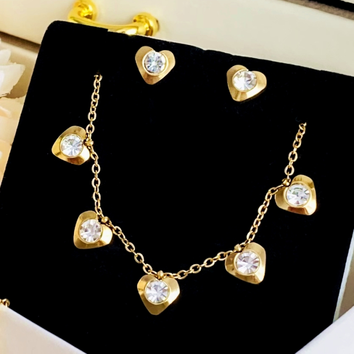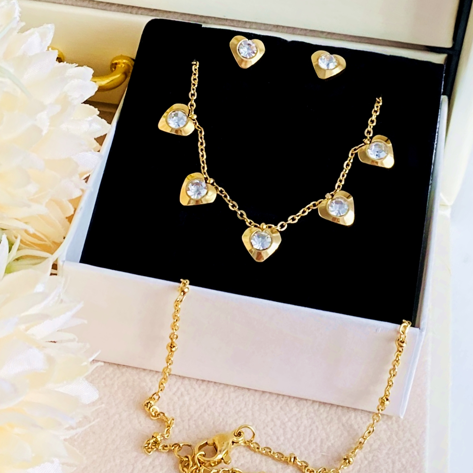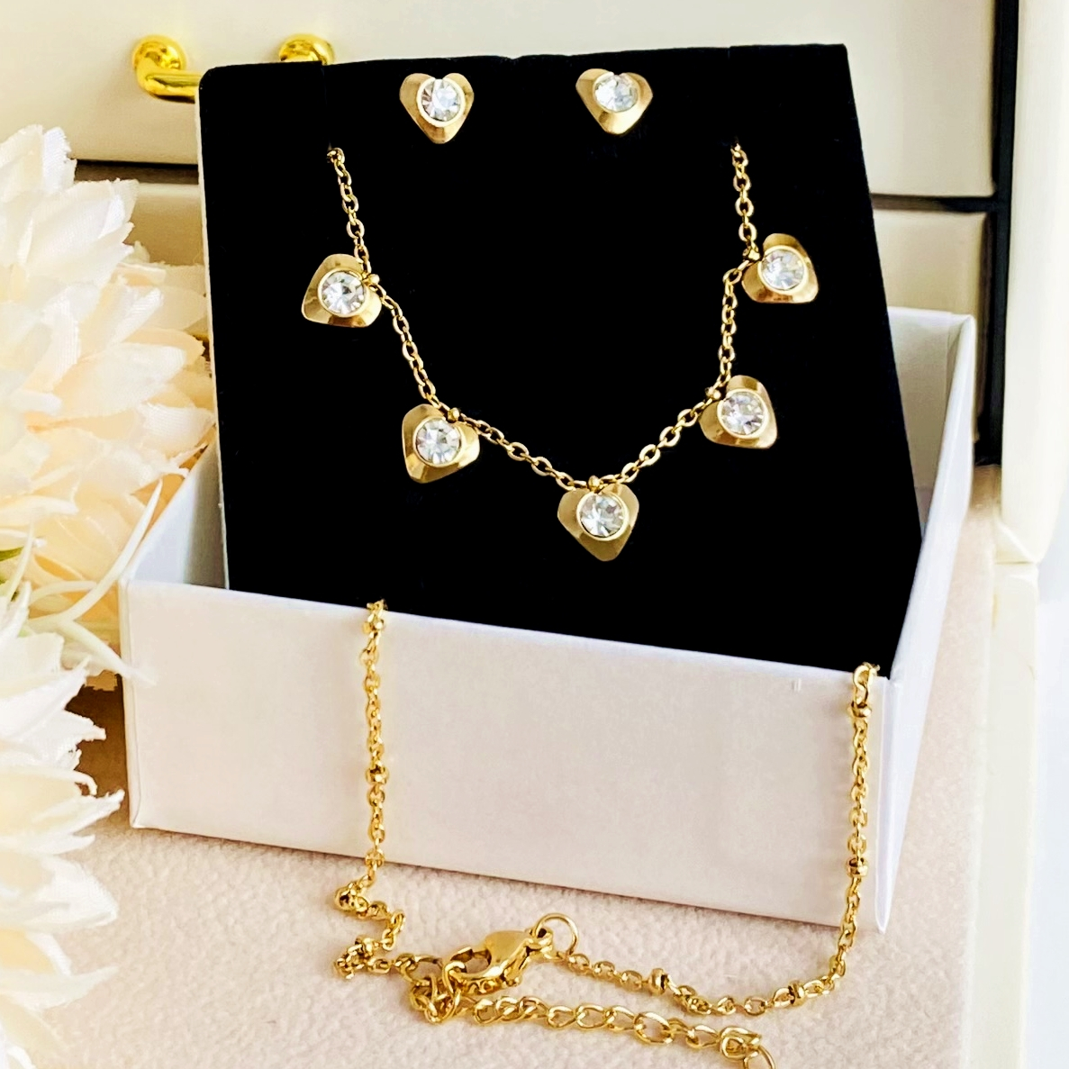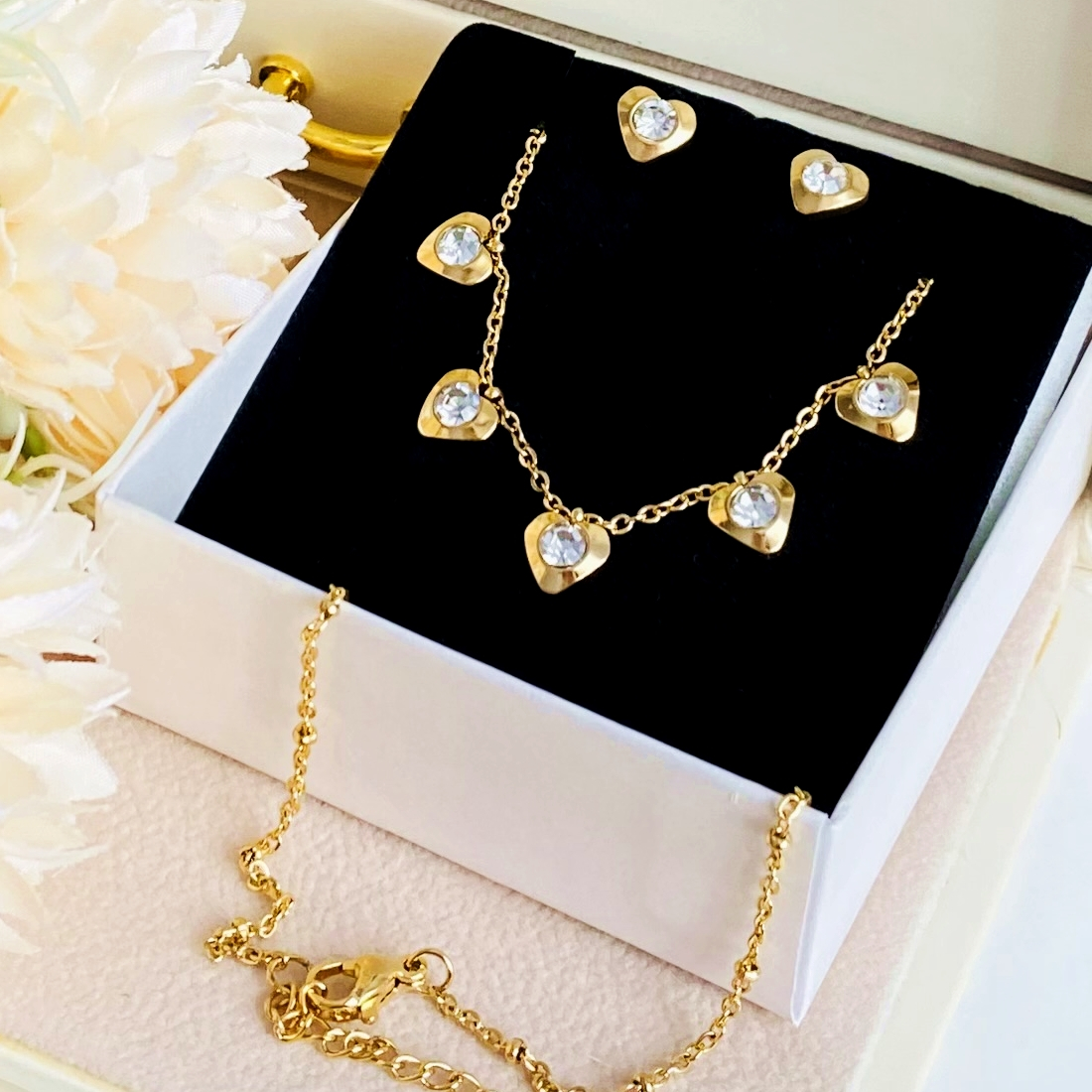 Set Colier & Cercei Inimioare Cristale - Otel Inoxidabil