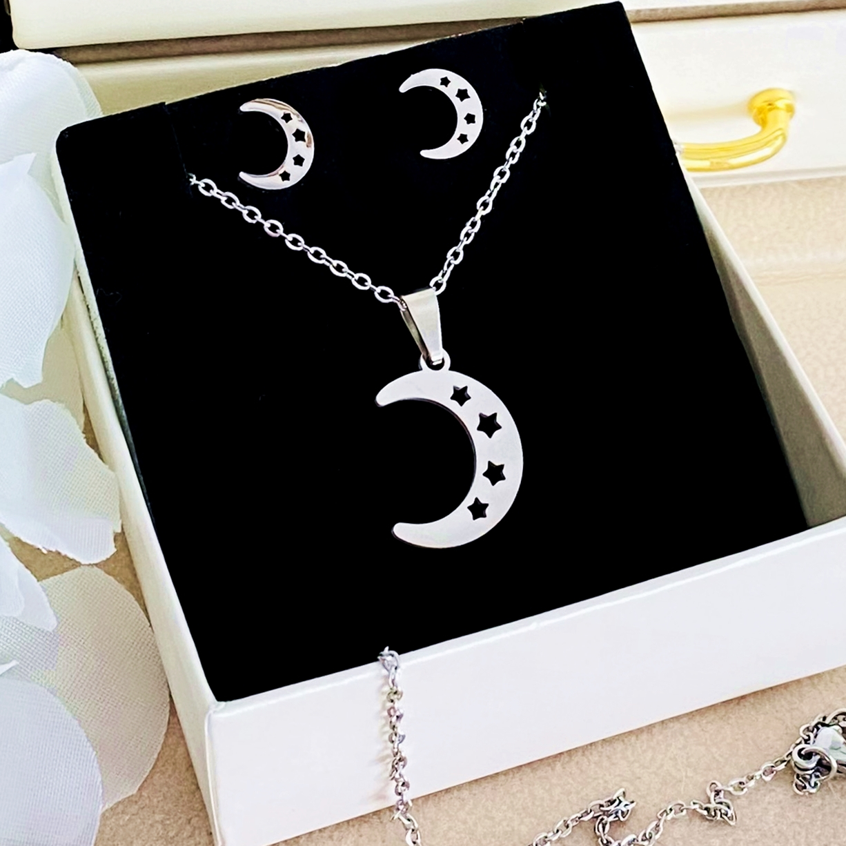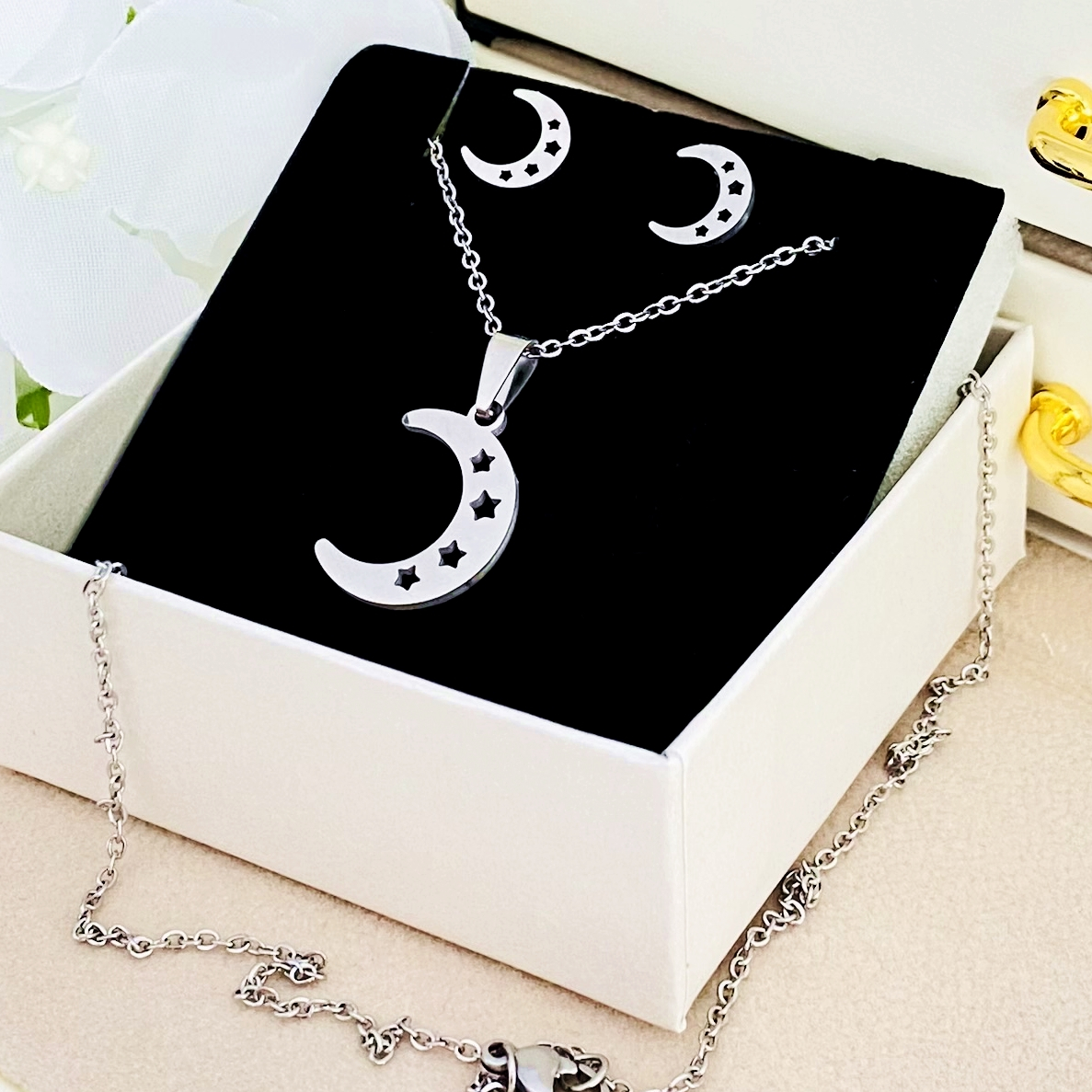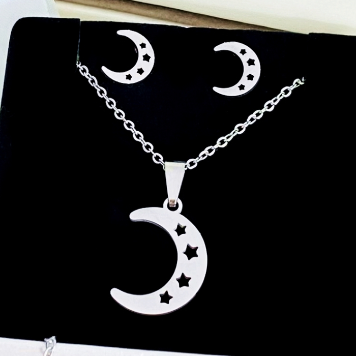 Set Colier & Cercei Luna Argintie - Otel Inoxidabil