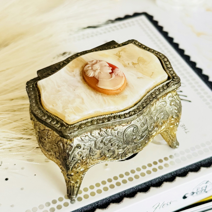 Cutiuta Vintage de Bijuterii, realizata din metal, perfecta pentru a aduce un strop de istorie in casa ta.