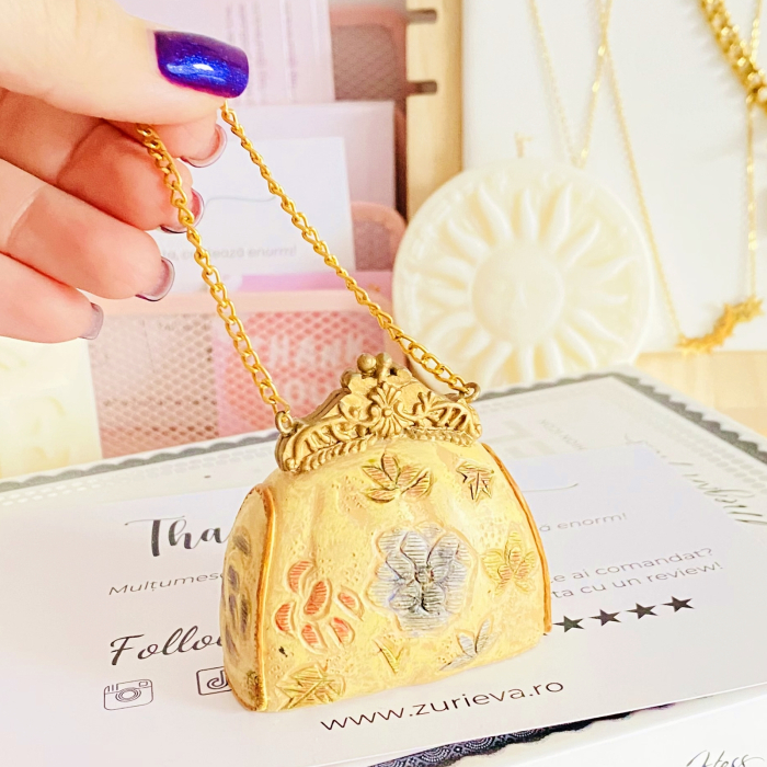 Decoratiune vintage, in forma de poseta, perfecta pentru a aduce un strop de istorie in casa ta.