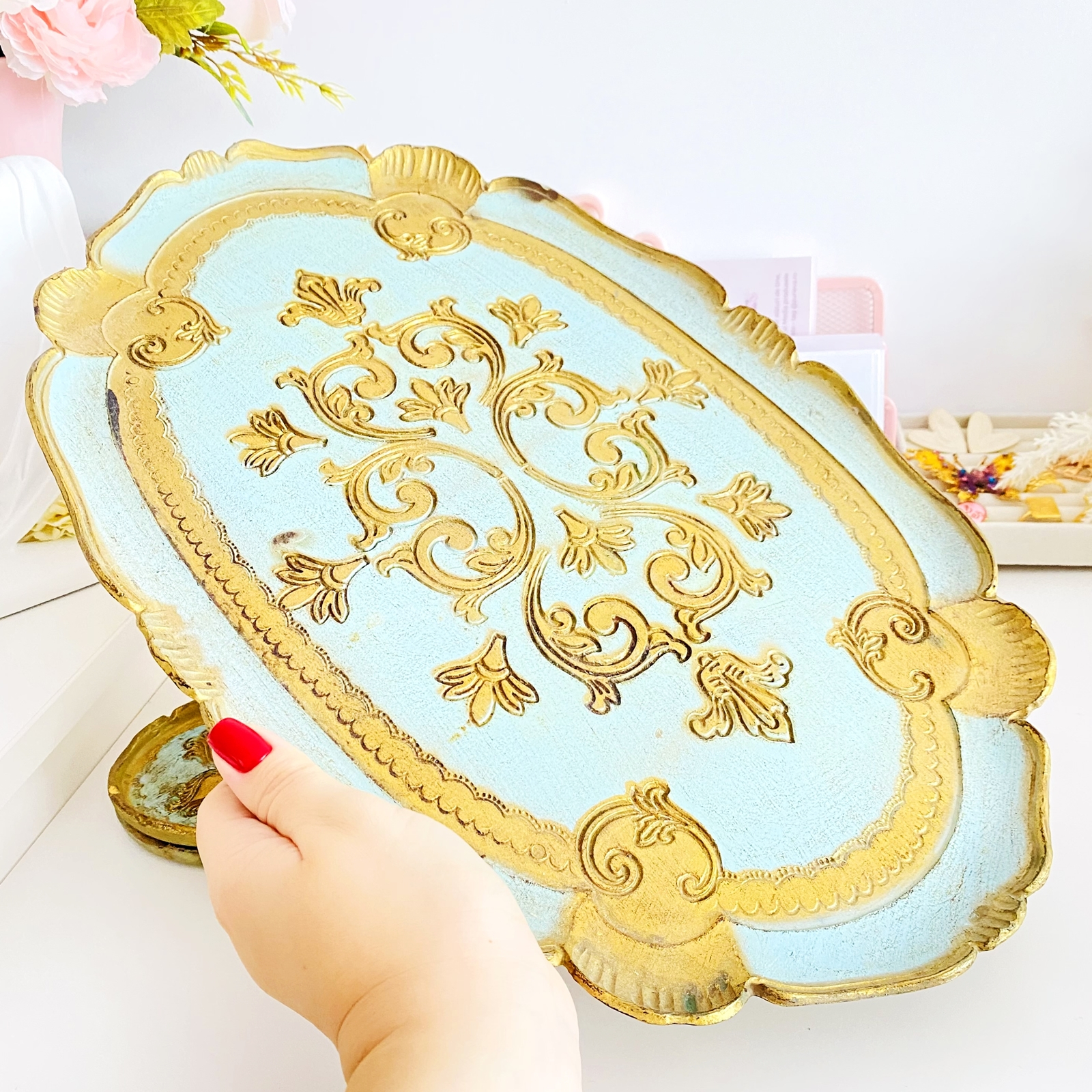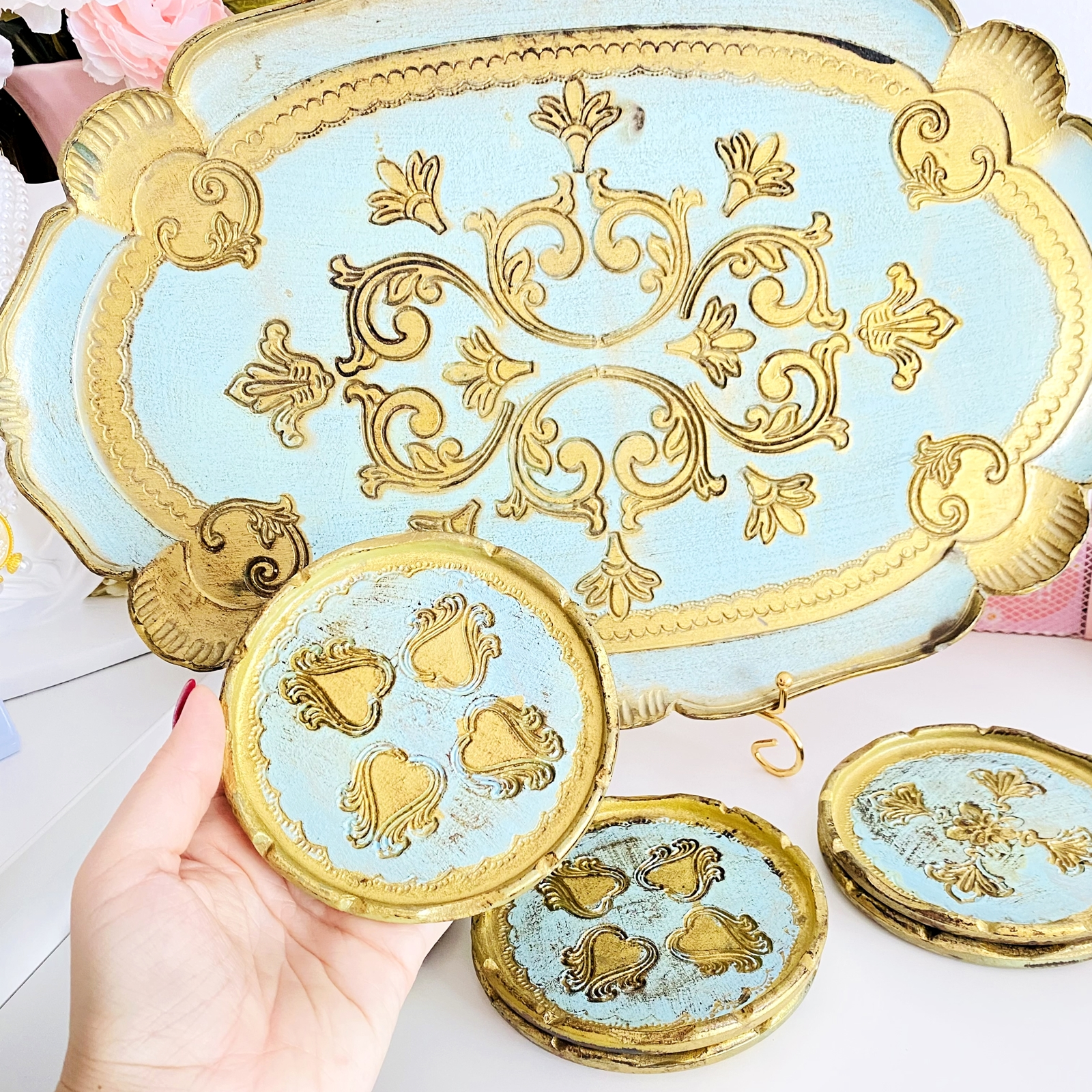 Set format dintr-o tava florentina vintage si 6 suporturi pentru pahare, fabricat in Italia, superb.