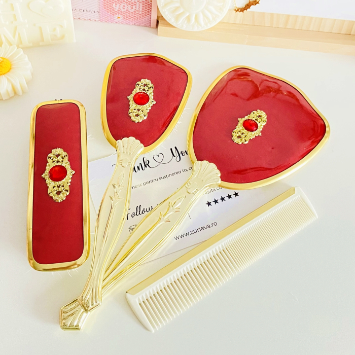 Set Vanity format din oglinda de mana, perie de par, perie de haine & pieptan vintage, frumos decorat, perfect pentru a aduce un strop de istorie in casa ta.